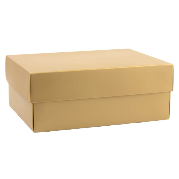 Wat is er feestelijker dan een geschenkdoos? Een gouden geschenkdoos! Deze doosjes hebben een afmeting van 20 cm breed, 15 cm diep en 8 cm hoog (A6 formaat). Dit maakt ze geschikt voor het verpakken van kleine cadeautjes zoals delicatessen, sokken, notitieboekjes of bijvoorbeeld een setje kleine verzorgingsproducten. De sierlijke matgouden dozen zijn gemaakt van 350 grams papier, waardoor ze erg stevig ogen en van hoogwaardige kwaliteit zijn. Om de binnenkant van de doos wat sierlijker te maken kun je overwegen om je geschenk in een vloeipapiertje te vouwen, wat papiersnippers of houtwol toe te voegen, en stickers of lintjes te gebruiken om het af te maken. Ook dit vind je allemaal in onze webshop!